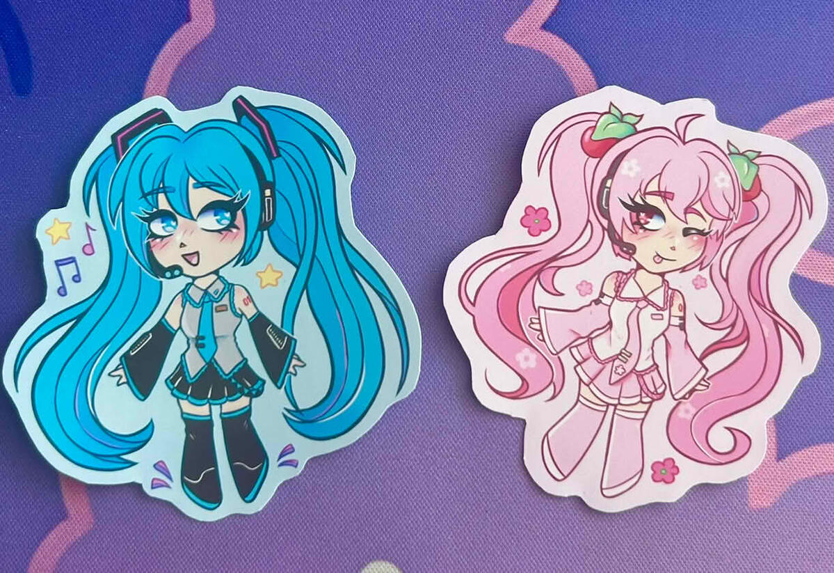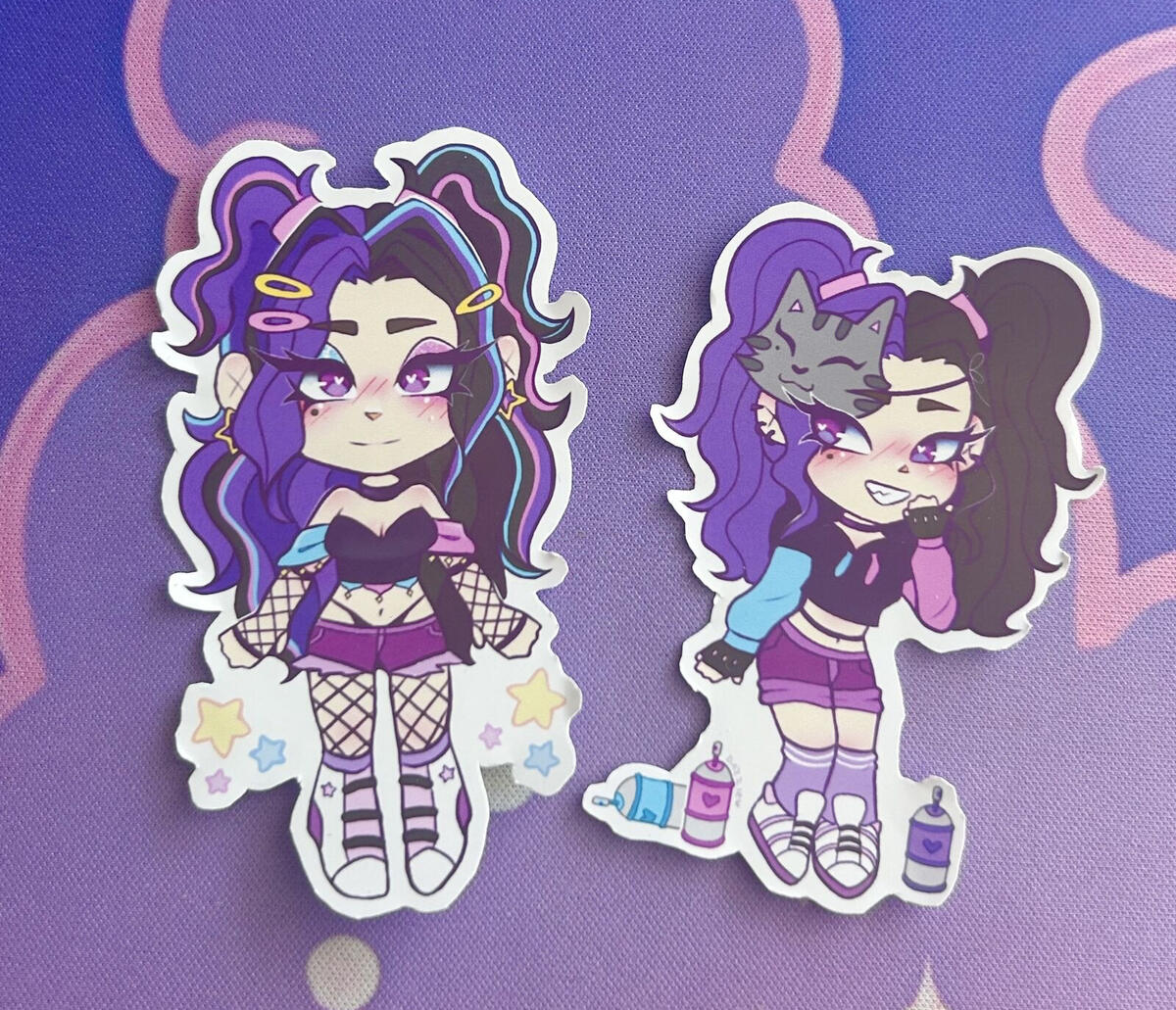 Here are some photos of products that I sell. They range from sticker packs to buttons & prints. This is not all that I have, but an overview of the variety & product types I have in my assortment!